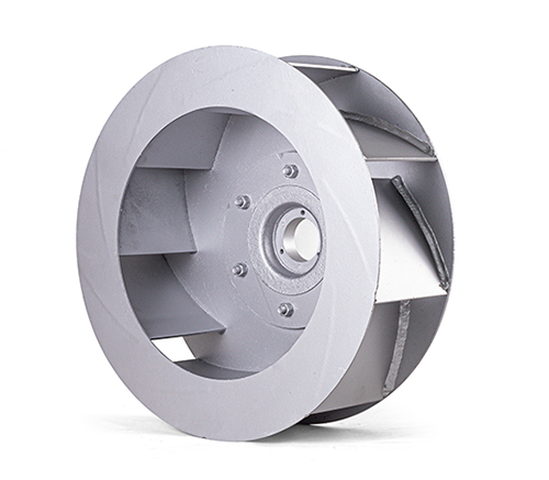 Rotor com pás duplas inclinadas ou levemente curvadas para trás.
